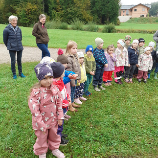 Es freut uns immer sehr, dass wir an diesem schönen Ort Danke sagen dürfen. Heuer erstmals mitgestaltet von Pfarrer Michael, der die Kindergartenkinder nach der Speisensegnung zum Kindergarten zurückbegleitet hat.